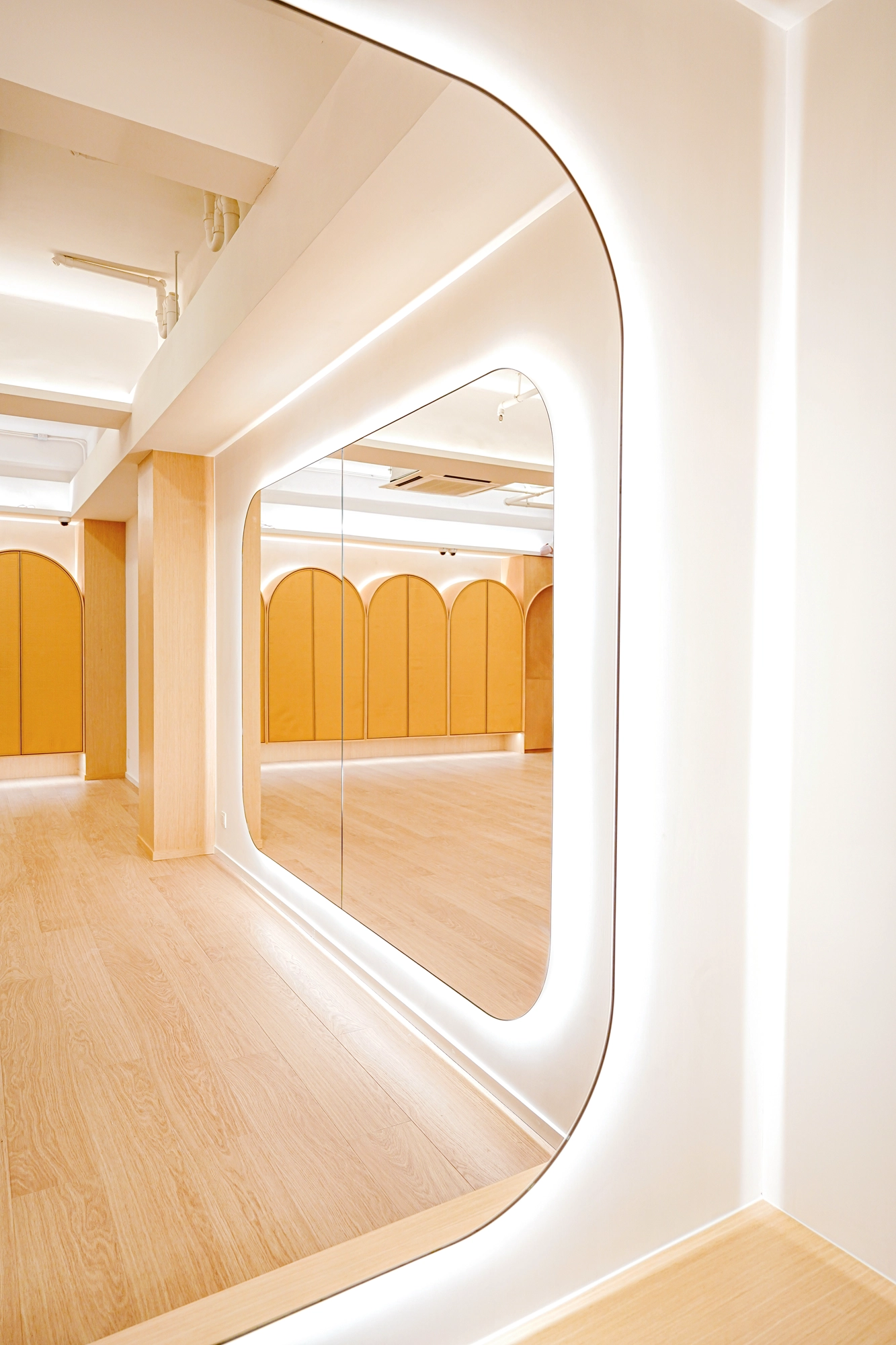 牆身利用多面拱型鏡作佈置,大大提升空間開揚感,令人感覺更寛敞。