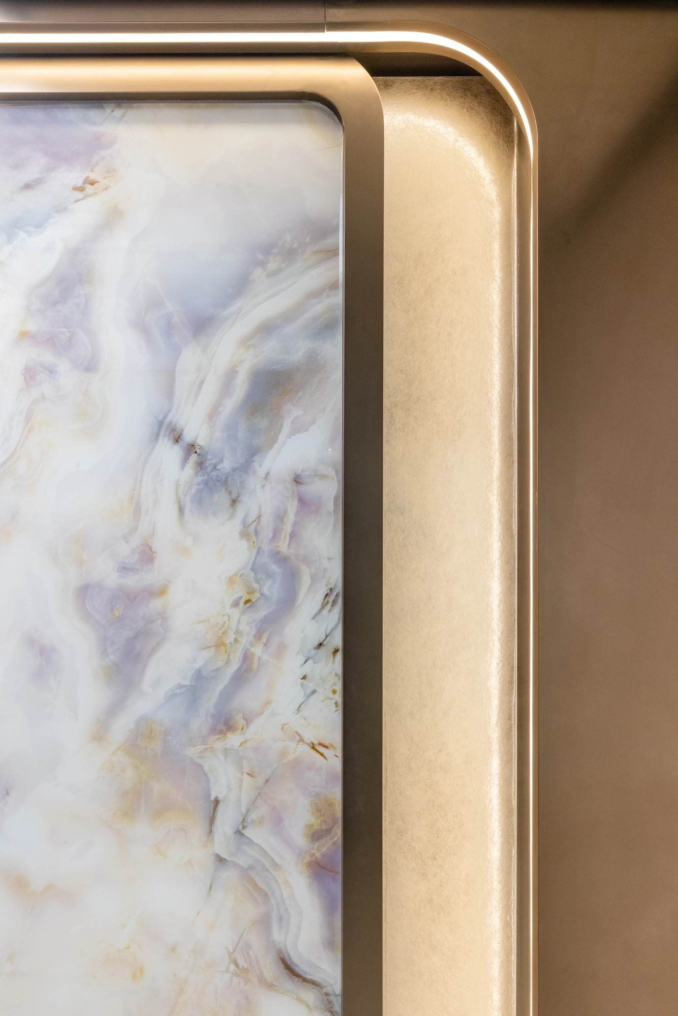 弧形設計使不同空間都能平滑地過渡,圓角融入室內,取代直角細節,減少了僵硬感,散發出高貴感。